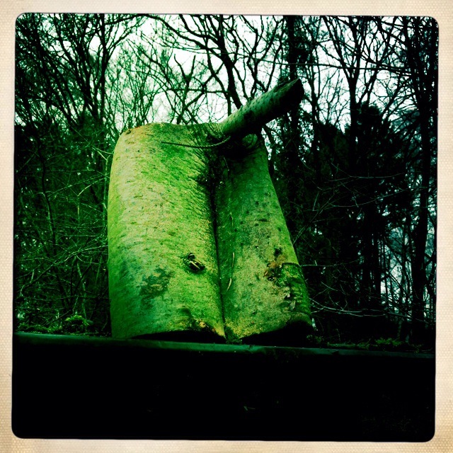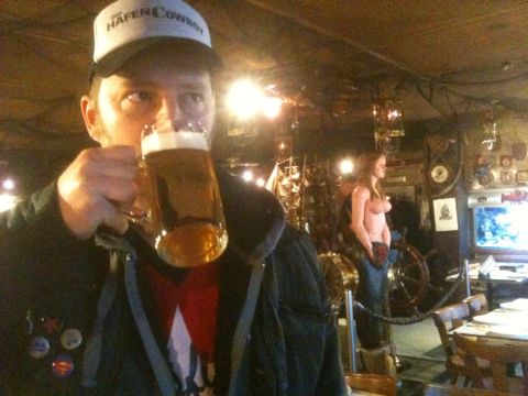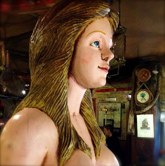 Bei der Gelegenheit hat mir meine Schwester übrigens noch eine Kneipe gezeigt – „Die letzte Kneipe vor New York“. Allein die war es wert. Das Coolste: Irgendein Kunsthandwerker hat sich für seine Galionsfigur offenbar mal die ideale Frau als Vorbild genommen. Wenn ich die auf die Terrasse stellen würde, würden alles sagen: Wie süß, Gerrit hat seine Freundin schnitzen lassen. Ehrlich, eine gewisse Ähnlichkeit ist nicht zu leugnen. Passend dazu ein Fundstück aus dem Brennholzhaufen meiner Schwester: