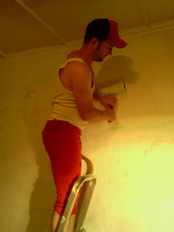 Bin heute spontan mit meiner Schwester zu meiner Mutter geheizt, in ihrem alten Benz über Land, ich liebe das. Bierchen getrunken und Otto-Platten gehört. Herrlich. Da machte es auch nix, dass wir gleich unsere große Schwester beim Pinseln ablösen mussten. Immerhin hat mir meine Mutter eine alte Hose geliehen. Meine Freundin hat das Foto schon ausgedruckt und in ihren Pferdespind gehängt.
