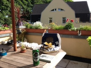 Hab seit unserer Ankunft beide Terrassen auf Vordermann gebracht (sogar ein paar neue Blumen gepflanzt) und Turnschuhe gewaschen. War danach ganz zufrieden, aber auch ziemlich groggy. Lag dann eben zur Entspannung noch eine halbe Stunde im Freibad und sah so an mir herunter und dachte, jawoll, das sind die Hände, der Bauch und die Beine eines fast 40-jährigen. Nicht falsch verstehen, es war ein wohlwollendes, fast liebevolles Gefühl, und ich musste an diesen Song von Baz Luhrmann denken, in dem es heißt: Achte auf deinen Körper, er ist das großartigste Werkzeug, das Du hast – und es stimmt. Und, wie gesagt, ich wurde plötzlich ganz weich, weil ich mit einem Mal meinen Körper spürte; mit dem ich als Junge über 10 Jahre lang Leistungssport gemacht habe, mit dem ich bestimmt 10 (eigene) Umzüge gestemmt habe, die Kinder getragen, in Schweden noch die Hänge gemäht, mit den Jungs gekickt und alleine den verfluchten Bootsmotor geschleppt habe. Und dass der mich nicht im Stich lässt, ehrlich, das ist doch großartig.