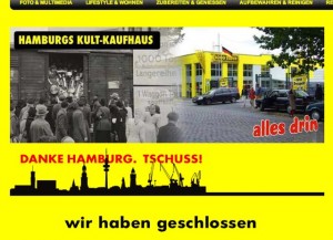 Jedenfalls bleibt zu sagen: Zum Bloggen ist das Internet toll, ansonsten ist es ein Fluch, ehrlich. In Hamburg hat schon wieder ein Traditionskaufhaus geschlossen. Keine Ahnung, woran es genau liegt, aber ich vermute mal am Scheiß-Online-Geshoppe.