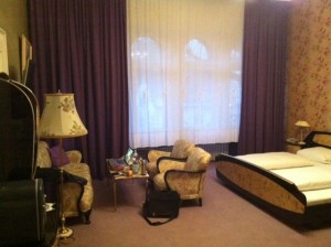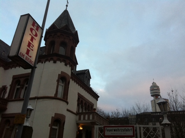 Aber jetzt bin ich da, und es ist ganz gemütlich hier. In Sichtweite ragt der Henninger Turm in die Wolken. Kenne ich noch aus der Sportschau, von diesem berühmten Radrennen. Hab gleich das Zimmer bezogen, in dem ich nachher lese, die anderen Künstler sind auch schon da. Schönes Konzept. Das Publikum wird auf die Acts verteilt und immer nach 20 Minuten ins nächste Zimmer geführt.