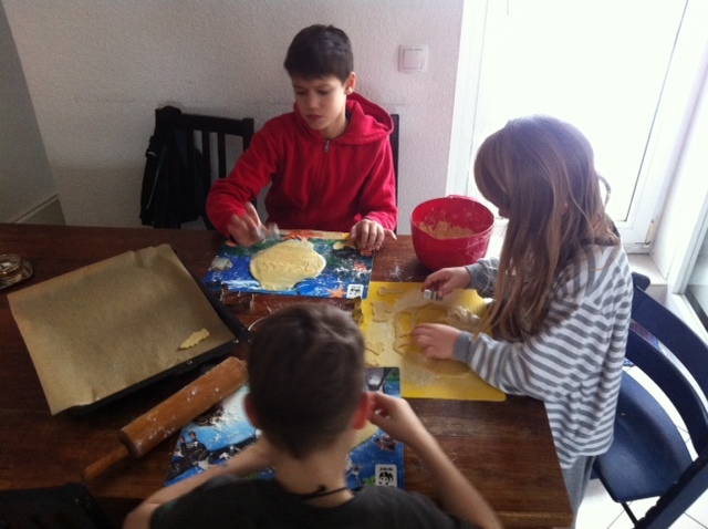 Haben heute mit all unseren drei Glücksbringern Weihnachtskekse gebacken. Ich wollte extra diesen ganz schlichten, klassischen Mürbeteig, genauso wie früher, als ich klein war. Meine süße Freundin wusste natürlich genau, was ich meine.